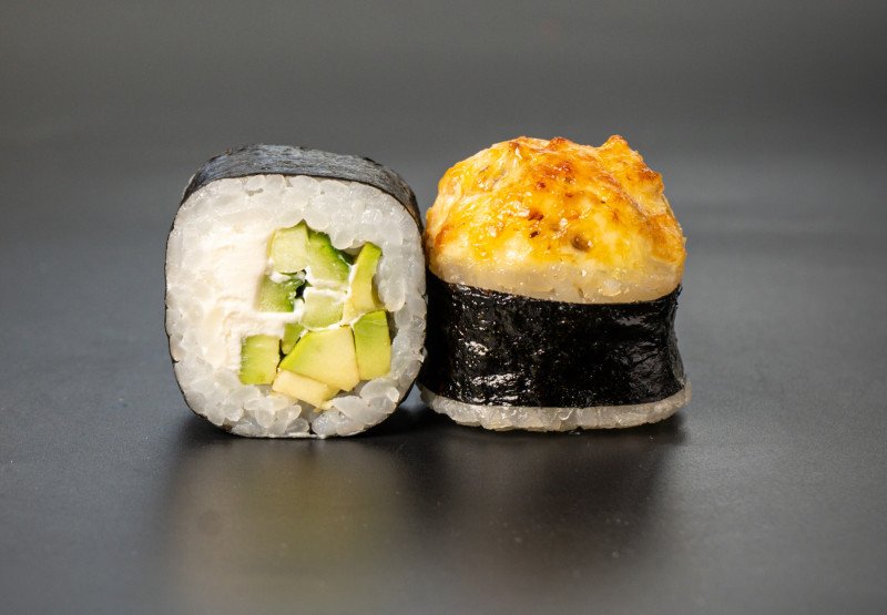 Рис, нори, лосось, угорь, огурец, авокадо, майонез, сыр творожный (8 шт.)